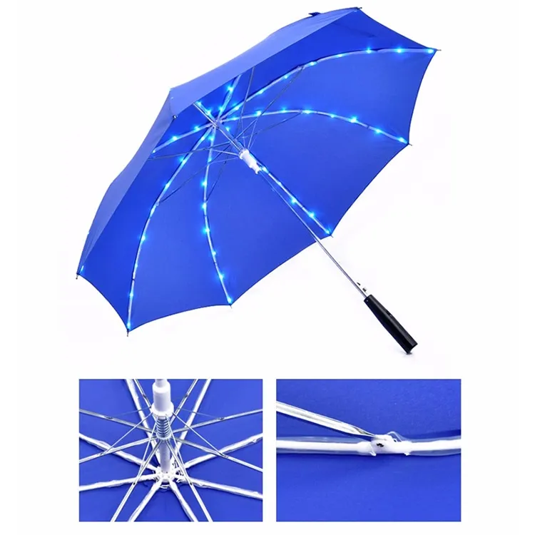 Paraplyknoglemateriale: for det meste fibermateriale, relativt let og har en vis grad af sejhed; Midterstangens materiale er normalt jern, hvilket sikrer en vis styrke; Paraplyhåndtagets materiale er plastik, som føles behageligt at røre ved. Nogle paraplyhåndtag kommer også med LED-lys.