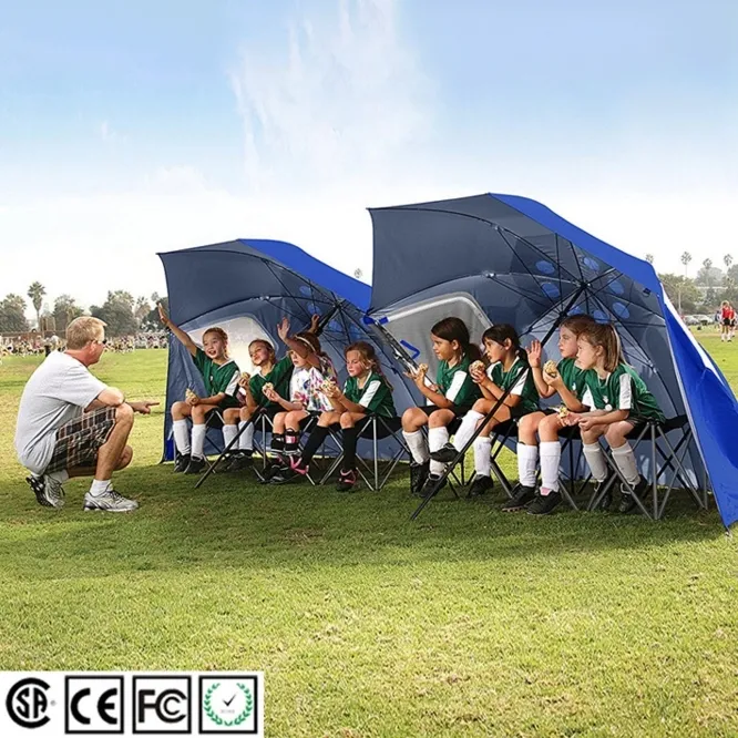 Vandafvisende og vejrbeskyttelse. Beskyt dig selv mod regn, vind eller sol med sportsbjælken. Den vandafvisende struktur vil holde dig tør og afslappet på regnvejrige spildage eller afkøle fra den varme sommersol ved stranden.