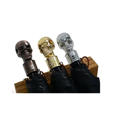 -Personlighed paraplyhåndtag -skull design (tre-farves valgfrit, bronze, sølv, gylden) Paraplybæltet bærer også et lille kraniumskelet med samme farve