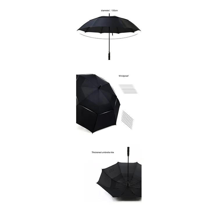 Dobbeltlags paraplyoverflade: sammensat af to lag paraplystof, indre og ydre, med en luftkanal i midten. Dette design anvender aerodynamiske principper til hurtigt at sprede vindkraft gennem luftstrømsstyring (svarende til "ventiler"), hvilket undgår, at paraplyoverfladen bliver væltet eller knækket af kraftig vind.